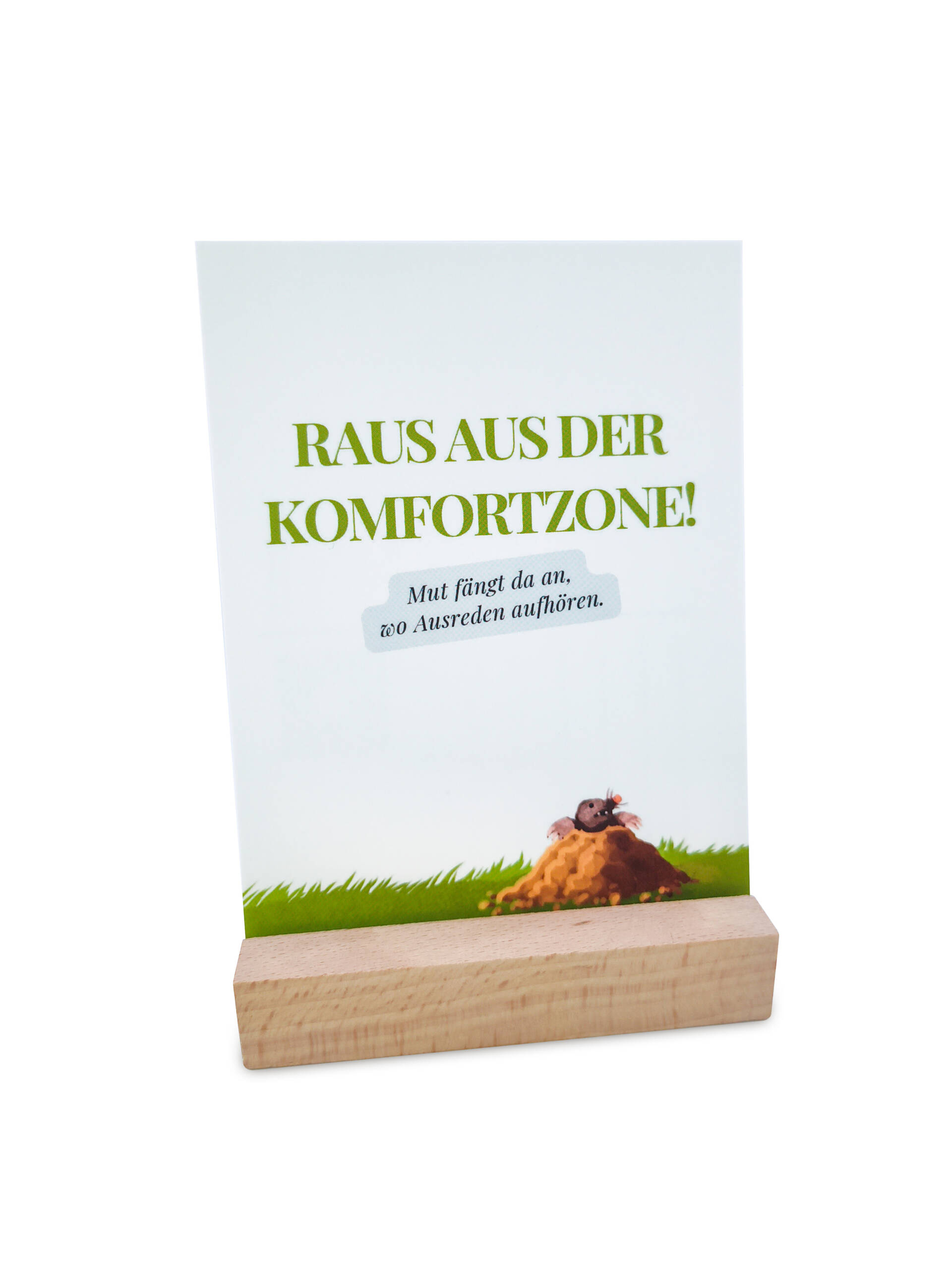 Diese Karte ist ein liebevoller Tritt in den Hintern. Raus aus der Komfortzone, rein ins Leben!